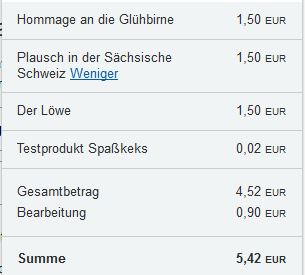 Der Rechnungbetrag im Warenkorb und in der Rechnung wird nun korrekt mit 0,02 € angezeigt.