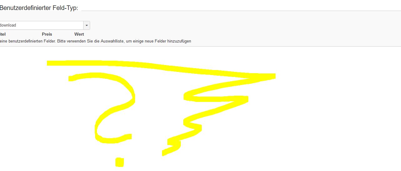 Wenn ich das produkt anlege erscheint unter "Selbsterstellte Felder"