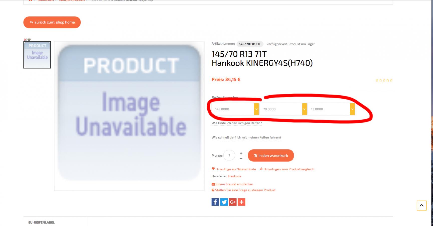 ich möchte Reifen anbieten. Diese haben halt verschiedene Dimensionen. Der Kunde soll dann die Möglichkeit haben, die Reifengröße auswählen zu können.