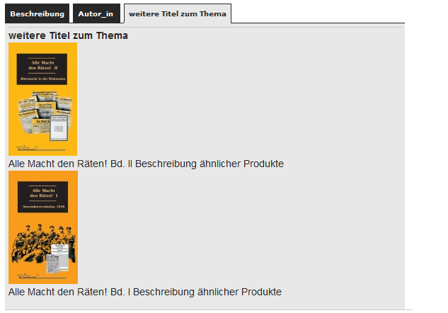 Bisher werden „in Beziehung stehende Produkte“ über Beiträge (verknüpfte Artikel) als Link in einer zusätzlichen Seite (Veranstaltungen) ausgegeben.