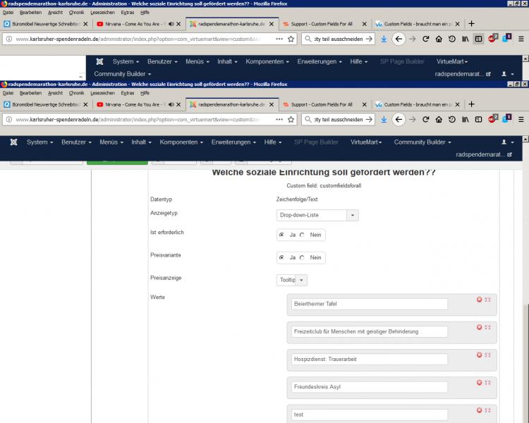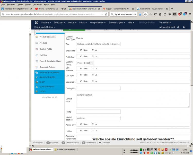 Habe ich versucht: Ich gebe in Custom Fields das an, was ich gerne hätte. Wird auch gespeichert.