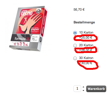 wenn ihr nun den + Preis hinter den Feldern weg haben wollt, dann müsst ihr die Zeile wie folgt ändern: