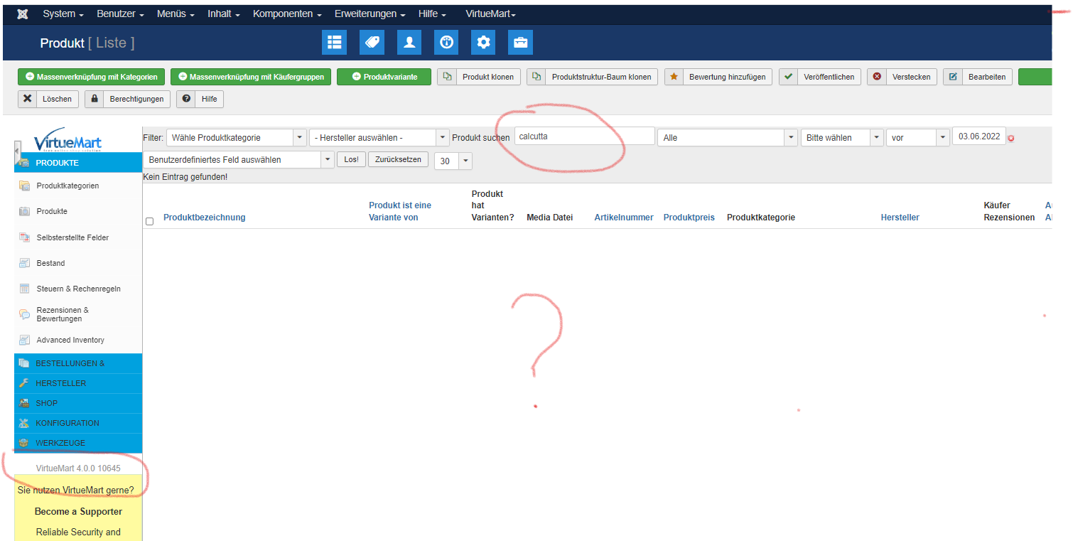Seit dem update auf Version 4.0, es funktioniert alles ausser in Backend, bei Produkt suchen, zeigt VM nichts an, egal was man macht. Ich habe Eistellungen mit 3.8.9 vergleicht, alles ist gleich ? Version 4.02 hat das gleiche Problem.