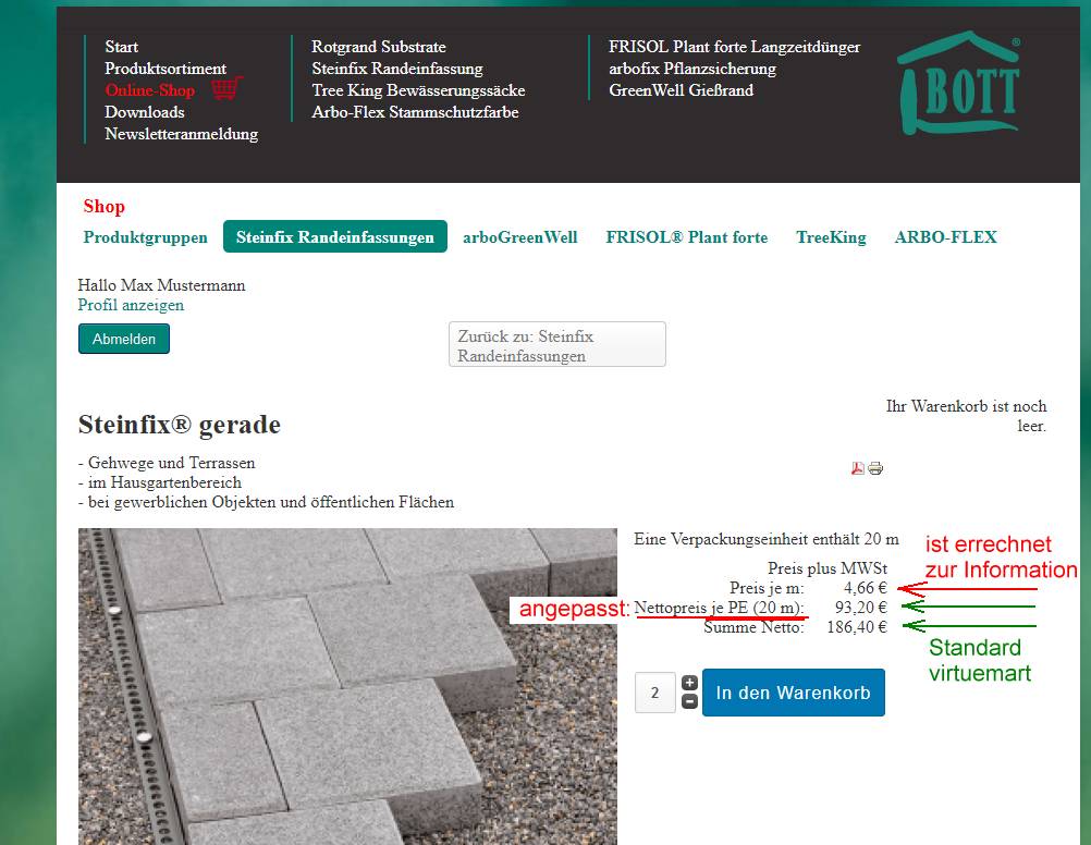 1. Bei der Angabe: Sie haben x Produkte im Warenkorb, würde dort vielleicht stehen "Sie haben 52 Produkte im Warenkorb" was sehr verwirrend wäre, weil der Kunde nur zwei Pakete Randeinfasungen und ein Paket Bewässerungssäcke bestellt hat (3 Produkte).