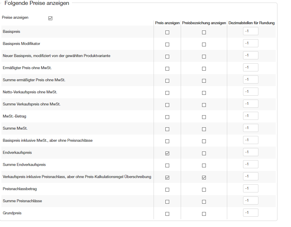 Im Anhang findest Du die Ansicht mit dem eigenen Template und dem Protostar sowie die Backendeinstellungen bei "Preise anzeigen".