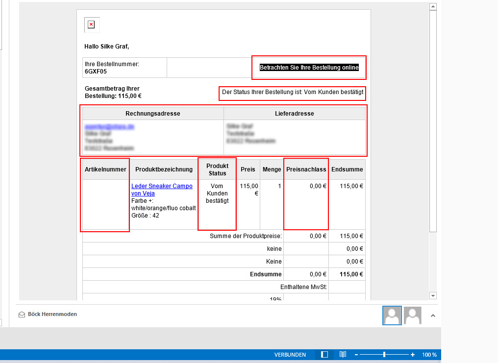 Ich bin komplett überfordert. Gibt es für diese Ausgabe (siehe Anhang) eine Datei in der ich da z.B. Tabellenzeilen löschen kann? Alles was rot umramt ist möchte ich weg haben. Deine Dokumentation half mir leider auch nicht weiter ...Ich habe die Dateien als Template Override im Ordner html/com_virtuemart/views/invoice/tmpl hinterlegt.
