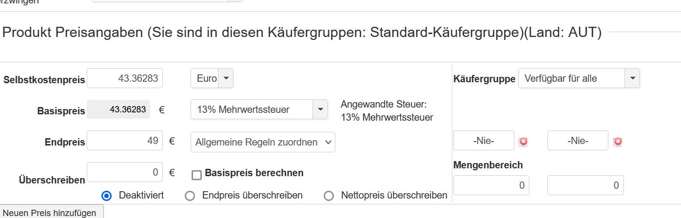 Wenn ich nun einen Artikel anlege steht beim Preis angewandte Steuern 10% UND 20%. Ich kann dort nicht wählen welcher Steuersatz gilt.