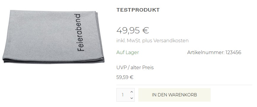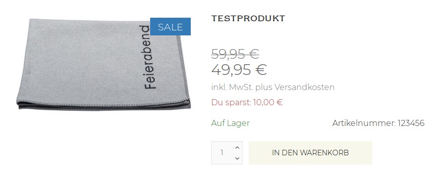 Und verstehe ich es richtig, dass mit dem Einstellen des Override-Preises, dann auch in der Shop-Konfiguration einige Felder, wie etwa der »Preisnachlassbetrag« ihre Bedeutung verlieren, und man ein »Du sparst X Euro«-Feld (s.o.) zusätzlich händisch anlegen müsste?
