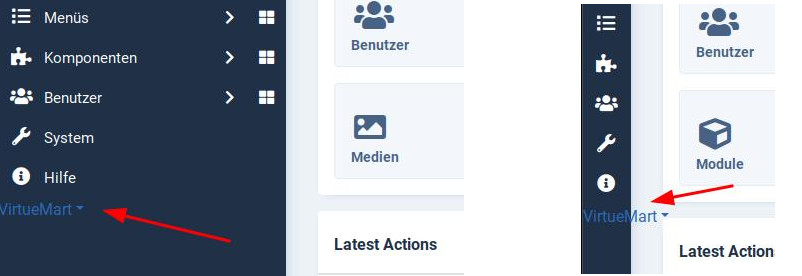 2.) Wenn dieser Link funktionieren würde, würde man darüber das VirtueMart-Kontrollzentrum, bzw. über den kleinen Pfeil rechts die einzelnen Unterpunkte aufrufen können, oder? Und wenn ja, geht Ihr so vor, um zur VirtueMart-Erweiterung zu gelangen? Oder geht Ihr den langen Weg über Komponenten → Virtuemart → Kontrollzentrum? Ich habe inzwischen die Erweiterung »Jooglies Panel für VirtueMart« (https://www.jooglies.com/virtu…erungen/jooglies-vm-panel) von Stefan installiert, welche auch wunderbar unter Joomla! 4 funktioniert. (Stefan, vielleicht solltest Du die Versionsnummer von 3.6.2.2 auf 4.x anheben, um dies zu unterstreichen