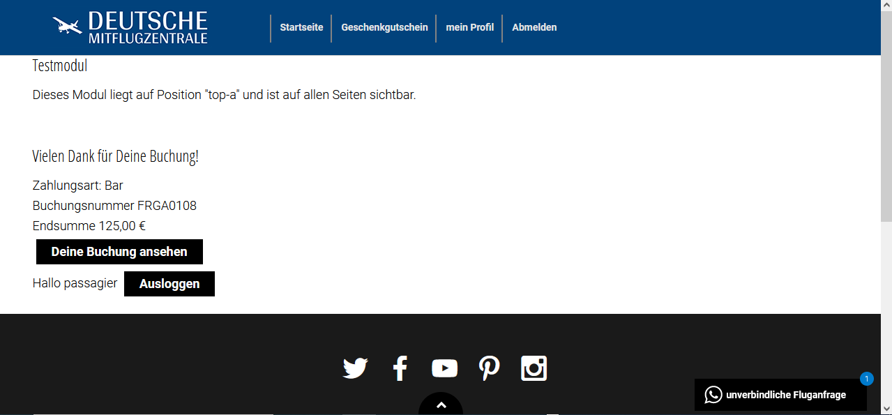 Wenn ich nun eine Buchung tätige, wird das Testmodul nicht angezeigt.