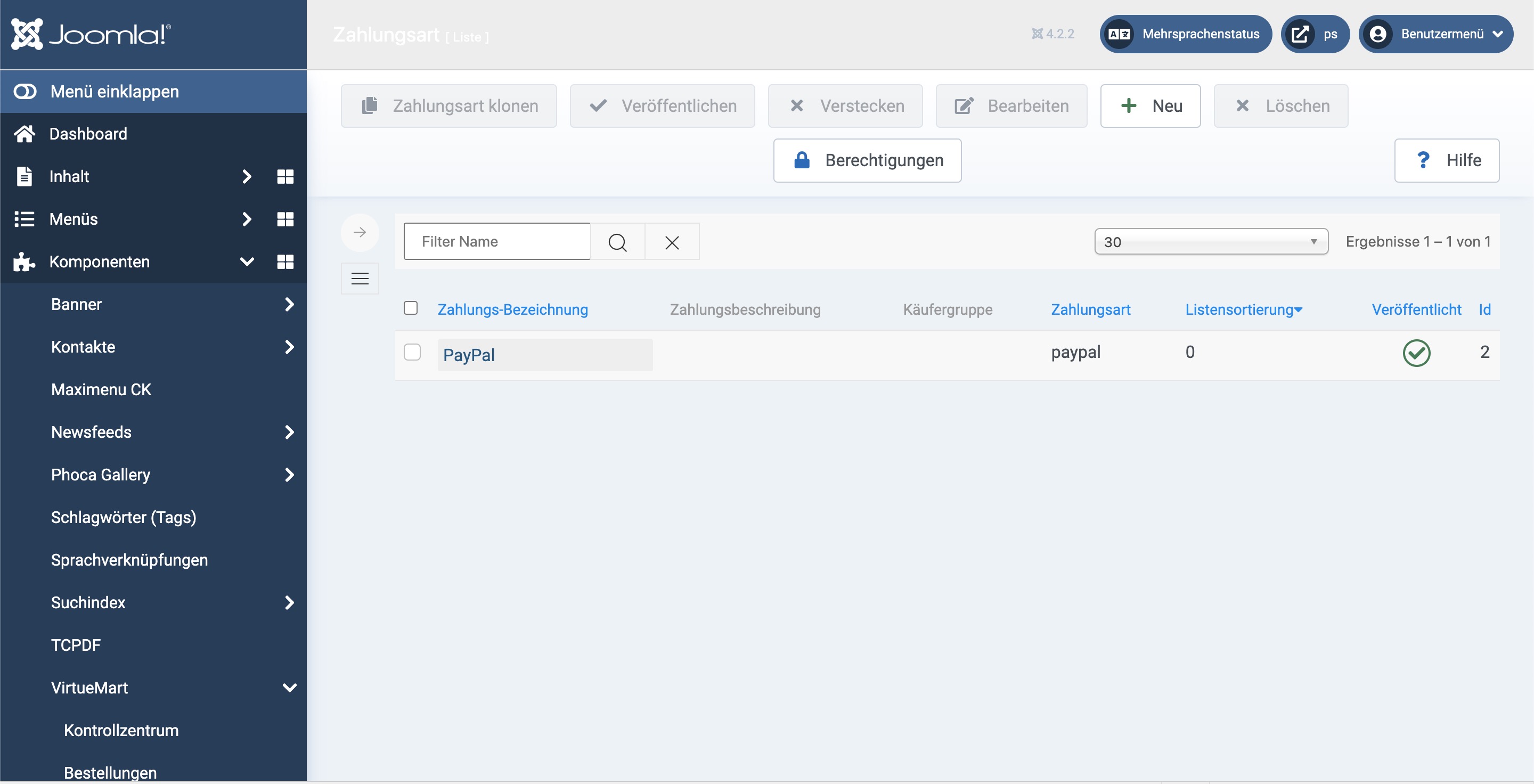 Joomla 4 und Virtuemart habe ich neu installiert.