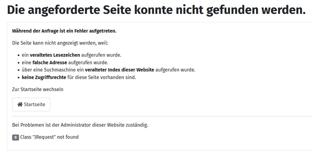 Seit der Migration auf diese Umgebung lassen sich keine Produkte mehr in den Warenkorb legen. Zuerst kam ein endloses Rädchen. Also habe ich das Popup ausgeschaltet um so zu testen. Leider ohne Erfolg, nun kommt eine Fehlermeldung "0 Class "JRequest" not found".