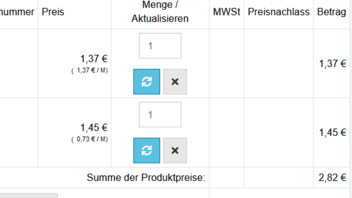 ich versuche gerade den Grundpreis (aufgrund unterschiedlicher Aussagen) im Warenkorb bei den einzelnen Produkten anzuzeigen......Preis klappt auch, aber die Preisbeschreibung kommt nicht, also z.B. "Preis / M"......sicher rufe ich das nur falsch auf.....