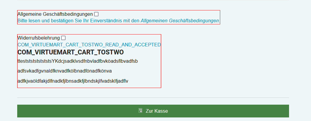 die Problematik mit der unformatierten tos1 konnte ich jetzt lösen, indem ich den kompletten Text (Allgemeine Geschäftsbedingen) in der Shopkonfiguration (Komponenten->Virtuemart->shop) gelöscht habe und neu geschrieben. Vermutlich ein Fehler im alten, übernommenen Text.