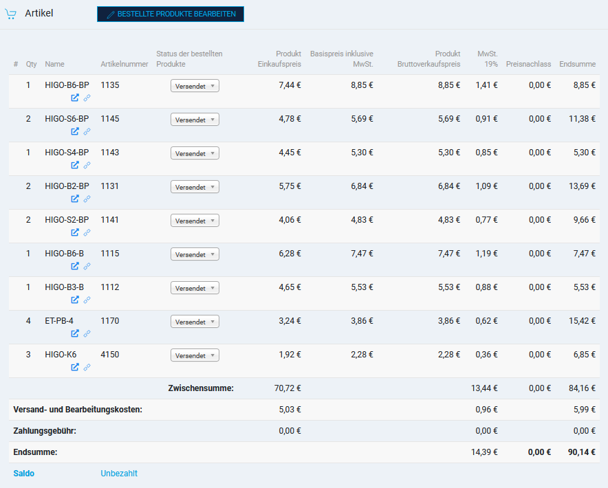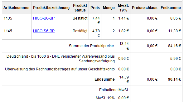 In der Bestätigung als auch in der Versand-Benachrichtigung werden aber nur 2 davon angezeigt. Der Rest erscheint da einfach nicht.