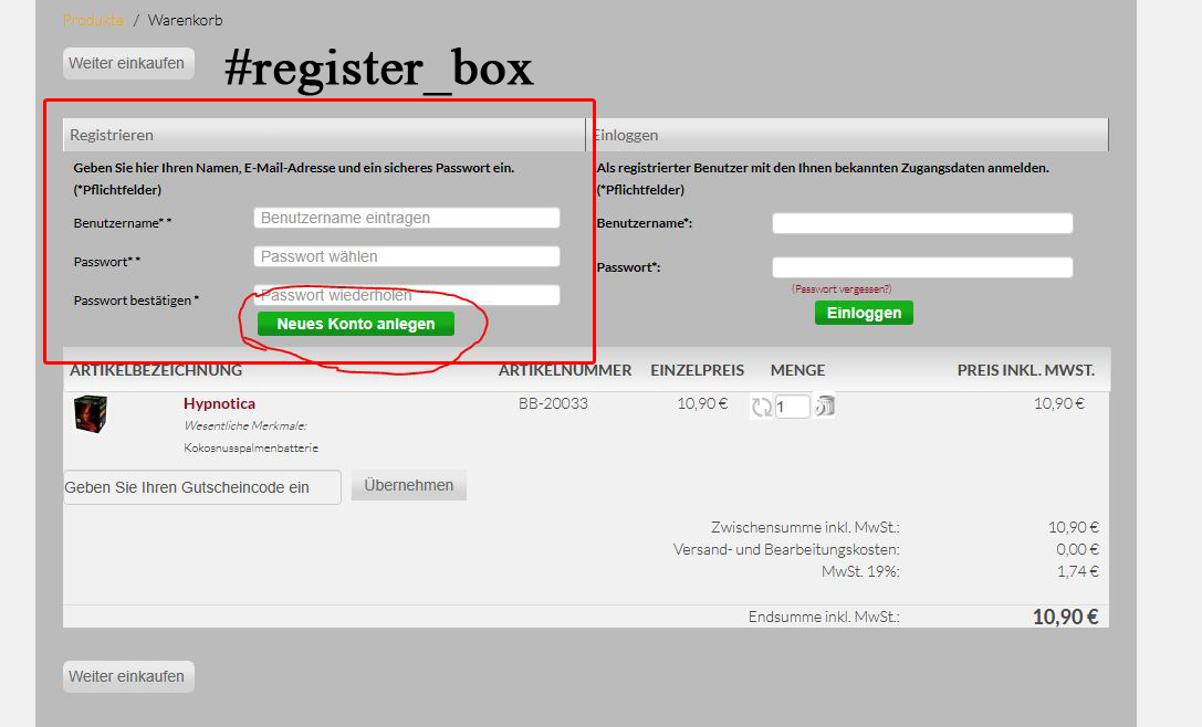 unter ...templateName/html/com_virtuemart/cart hab ich gefühlt schon alles durchsucht.... Ich könnte mir vorstellen das er die "register_box" (so heisst der Div-Tag) von einer bestimmten php generiert wird und dann in die cart geladen wird.... Aber eben welche.