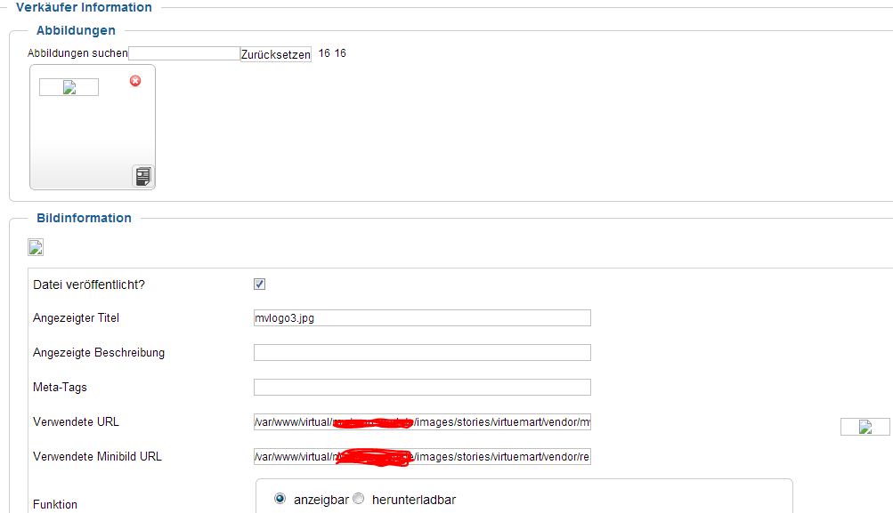 ich habe mir wohl irgend wie das Logo für den Verkäufer "zerschossen". Ich habe schon versucht das Bild neu hochzuladen aber es wird nicht angezeigt. Im Verzeichnis liegt es auch nicht.