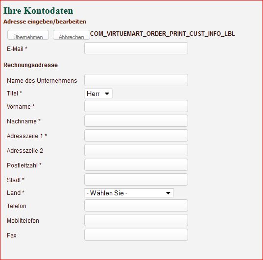 Wenn ich versuche eine Bestellung durchzuführen als tester erscheint eine etwas merkwürdige Formulardarstellung
