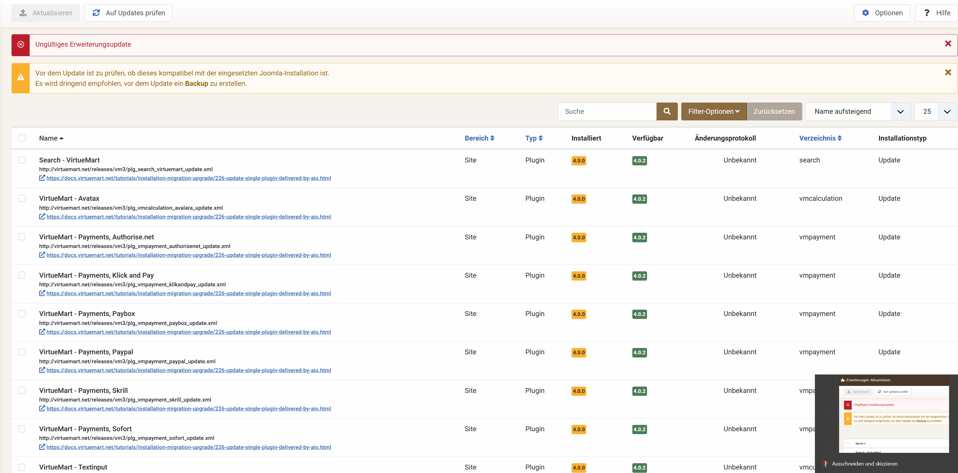 Ich bin auf der Virtuemart Seite auf Downloads gegangen, aber dort ist nur eine ältere Version zum Download. Kann ich nicht verstehen, warum die dort nicht die aktuelle hinterlegen oder auf die Seite mit dem Link leiten, die faro gepostet hat. Dort konnte ich dann die richtigen Dateien herunterladen.