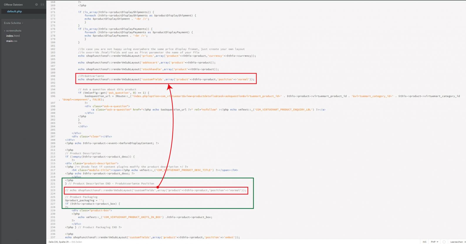 Entweder übersehe ich da was, oder ich habe KA, vermutlich letzteres. Im Code steht " product,'position'=>'normal' ", das normal muss ich ersetzen, soweit habe ich das verstanden. Wo kann ich nachsehen wo die Positionen sind bzw. wie heisst die Datei? Kann es sein, das es index.php ist? Meine Positionen in Templates heissen nicht onbot, ontop oder normal, dass steht aber in default.php.