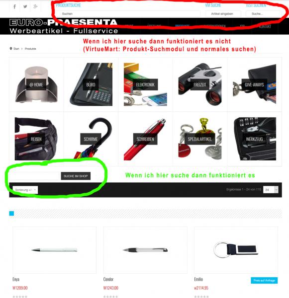 Hab ein kleines Problem mit den Suchmodul, kann kein Artikel finden. Es ist egal ob ich die komplette Artikelnummer (w3866.00) eingebe oder nur Teil. Hab auch versucht mit der Produktbezeichnung, kein Erfolg. Die Homepage kann ich dursuchen und bekomme auch Resultate, die Artikel werden aber nicht gefunden.