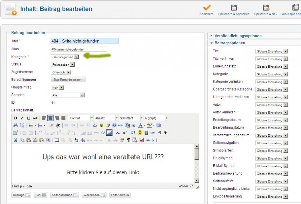 Ich habe einen Artikel in einer Kategorie angelegt und möchte, daß der Artikel auch nur nach einem klick auf