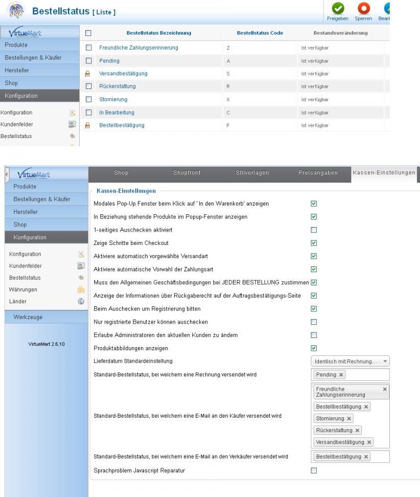 Bei "Standard-Bestellstatus, bei welchem eine E-Mail an den Verkäufer versendet wird" nur "Bestellbestätigung"