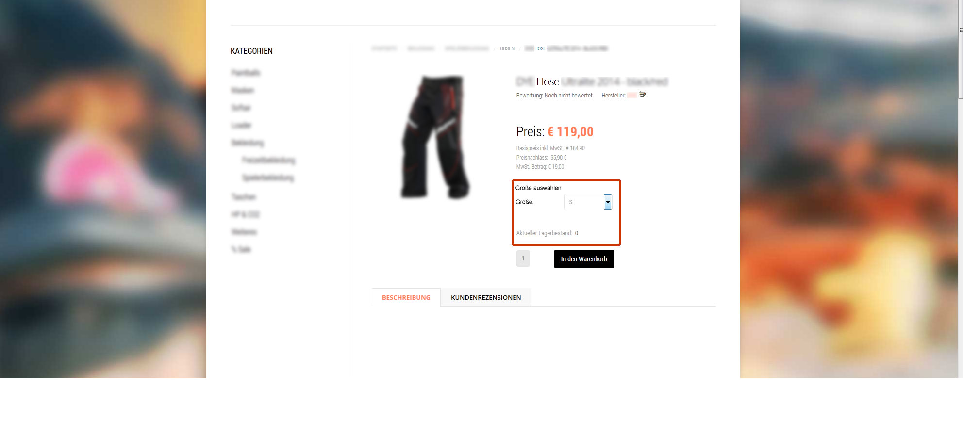 Auf der Detailseite das Gleiche - egal welche Größe man auswählt der Lagerbestand ist NULL - warum???