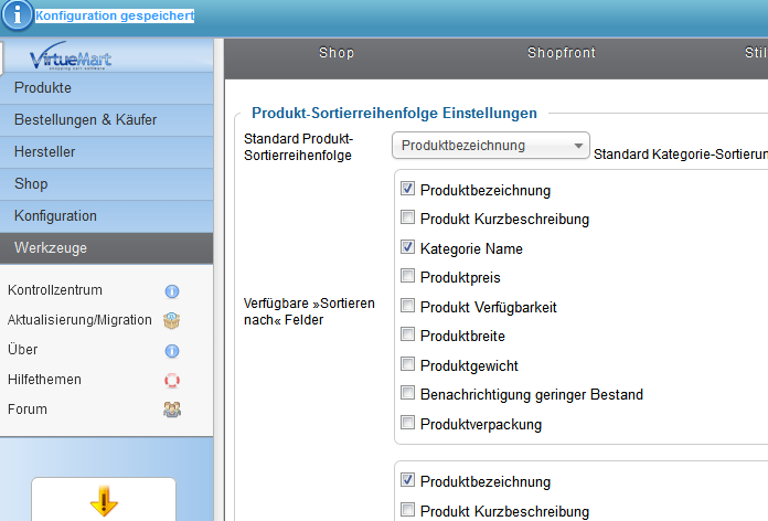 Ich habe den Shop soweit es geht fertig eingerichtet und möchte nun die Sortierungsmöglichkeiten direkt deaktivieren.