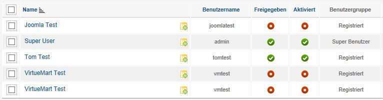 Nun habe ich folgendes Problem: Verwende ich die Jooomla!-eigene Regstrierung, funktioniert die Benutzerregistrierung problemlos. Verwende ich dagegen die Registrierung von VM2 beim Checkout-Vorgang, wird im Backend zwei mal exakt der selbe Benutzer angelegt.