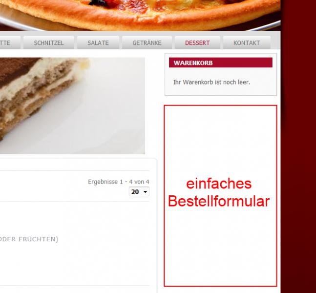 Das erste wäre das ich ein Bestellformular in einer Modulposition darstellen möchte. In meinem Fall auf der rechten Seite der Webseite. Wie zum Beispiel auf der Webseite Pizza Fox | Ihr Lieferservice für Köln
