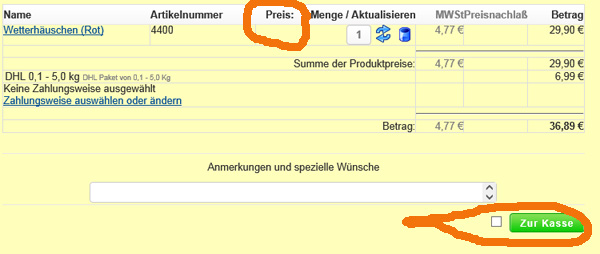 Hallo Stefan, das Einschalten der Kästchen bringt nichts. Bei der Produktauflistung zeigt sich der Bruttopreis als "PricesalesPrice" - diese Variable müsste doch auch im Warenkorb Verwendung finden ? - Ist aber leider nirgends zu finden. Das ist schon merkwürdig. Eventuell könnten man ja diese Variable nehmen um den Bruttopreis anzuzeigen, da dieser ja immer fest mit der Einzelstückzahl des Produktes verbunden ist, weiß aber nicht ob es dann die Berechnung der MWST beeinflusst !