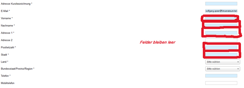 Interessant ist dass die Benutzereingaben wie Name, Benutzername und Passwort übernommen werden. Die Adressdaten werden aber nicht übernommen !